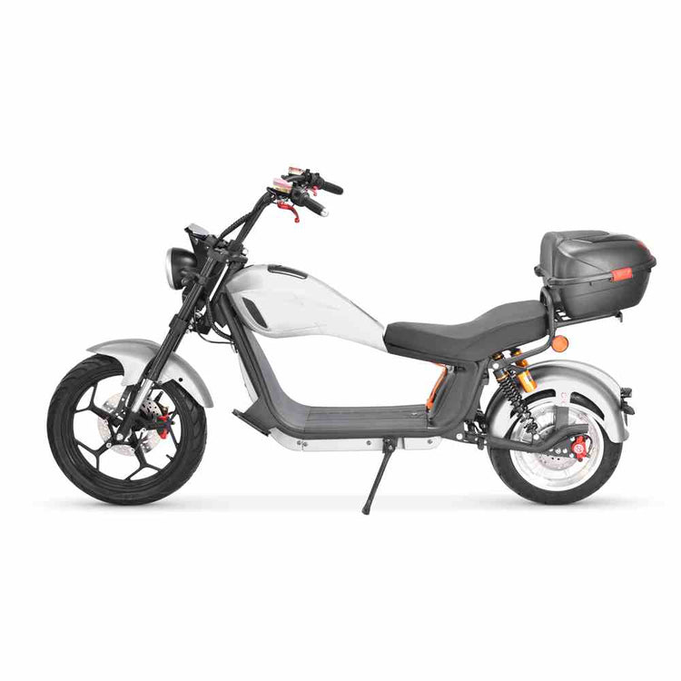 The range of a citycoco chopper is the maximum distance it can cover before running out of battery power. Other factors that can affect the range of an e-chopper are its weight, the average speed you're traveling and motor power. The weight of the rider and weather conditions also determine the real-world range of an e-chopper.